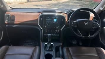 The Scorpio N's automatic petrol variant features a 1997 cc, 4-cylinder turbo-petrol engine, producing 200 bhp and 380 Nm of torque. It's available with an automatic transmission (TC) with 6 gears and a manual override, and comes with features like turbocharging, idle start/stop, and BS6 Phase 2 emission standards. The Scorpio N has a fuel tank capacity of 57 liters and a claimed mileage of 12.12 kmpl